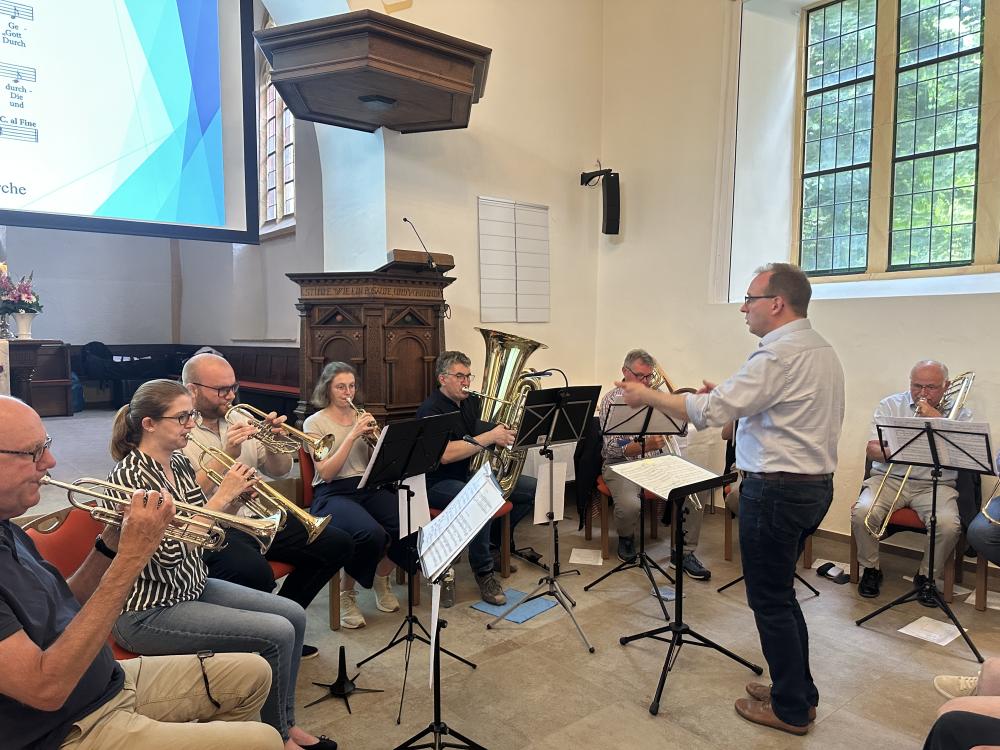 Den Gottesdienst hatten Jugendliche gestaltet – so wie sie sich Kirche wünschen. Komplett anders als gewohnt, mit eigenen Texten und vielen Ideen, mit Pop-Songs und Unterstützung vom Bläserensemble unter der Leitung von Christian Kornmaul. Das kam sehr gut an – die jungen Leute ernteten viel Applaus.